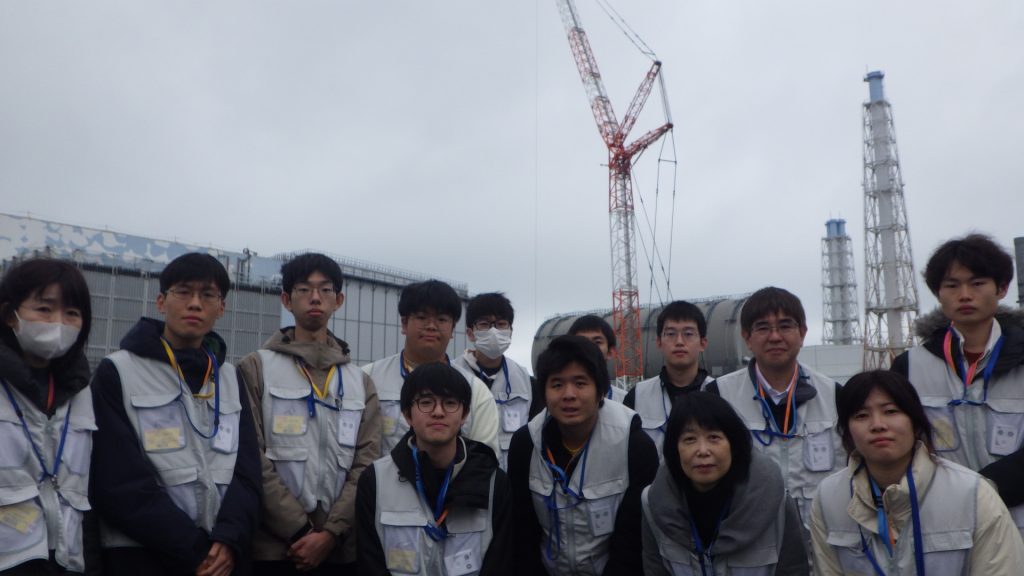 2025年12月25日に福島第一原子力発電所見学会を実施しました。本学工学部の学生や教員を中心に、他学部の学生や教職員も含む計26名が参加し、日立キャンパスを発着点として日立駅海浜口を経由して福島第一原子力発電所および東日本大震災・原子力災害伝承館を訪問しました。福島第一原子力発電所では、廃炉に向けた取り組みやALPS処理水についての説明を受け、東日本大震災・原子力災害伝承館では震災および原子力災害の経緯や被災地域の歩みを学び、科学技術と社会との関わりを多角的に考える機会となりました。